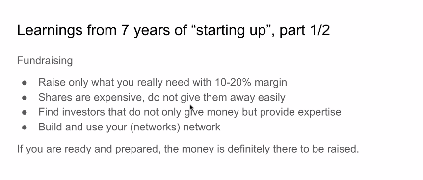 13:25 – A very Interesting information session about first round fund raising! Incredibly insightful, open, honest presentation of Wingy’s start!